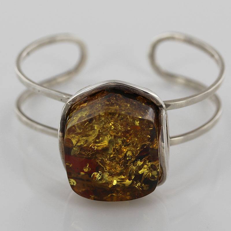 German Green Baltic Amber Handmade Bangle Solid 925 Sterling Silver – BAN050 – RRP£500!!!