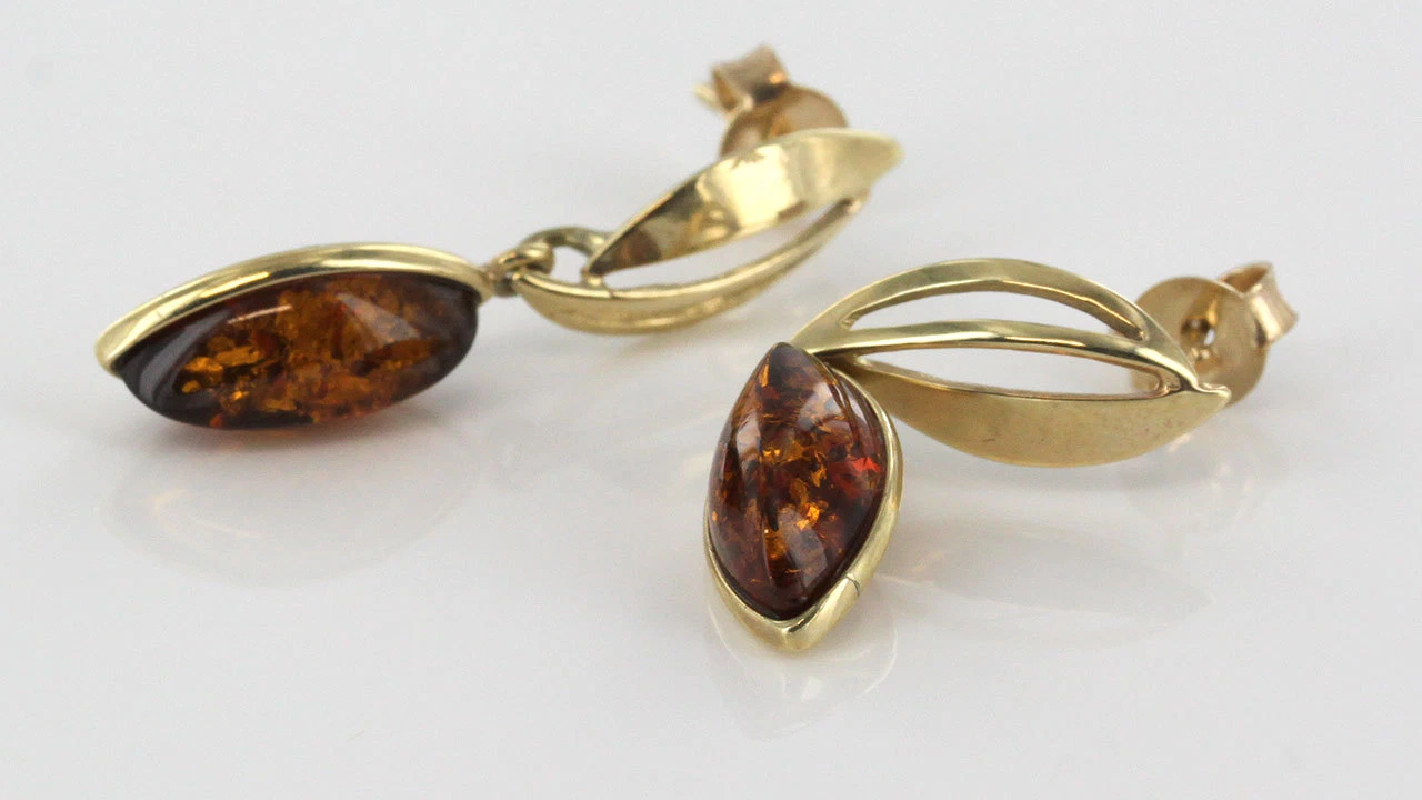 Italian Made Unique German Baltic Amber in 9ctGold Drop Earrings GE0133 RRP£295!!!