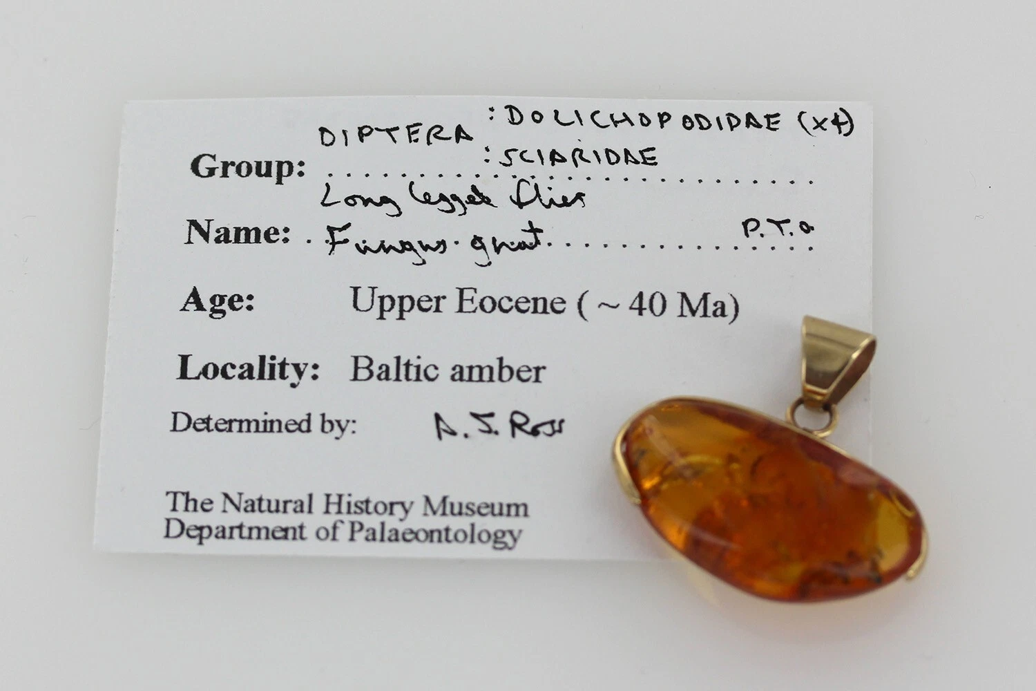 Italian Handmade Dominican Amber Pendant in 9ct solid Gold with Fungus Gnat, Midges GPR044 RRP£495!!!