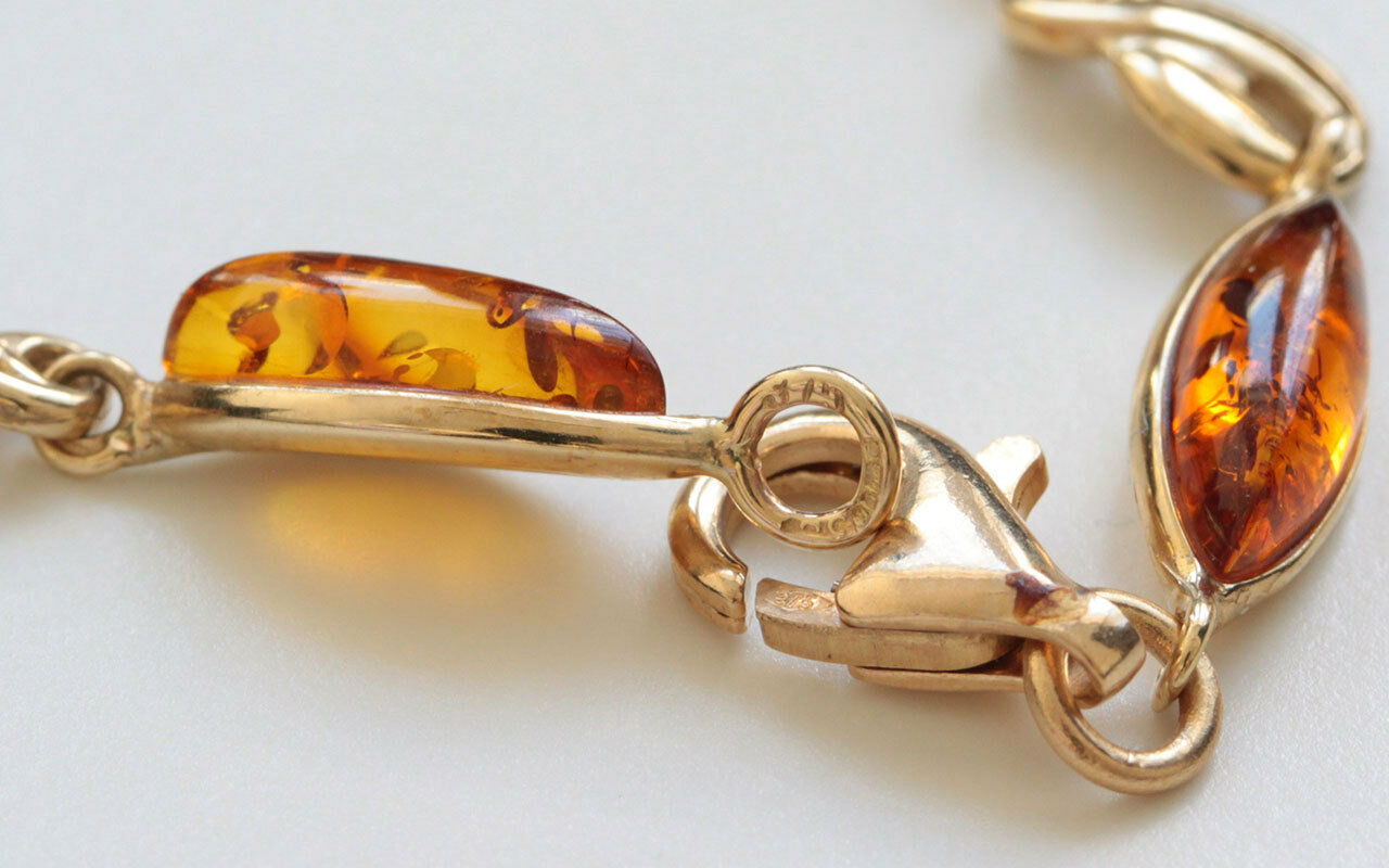 ITALIAN HANDMADE GERMAN BALTIC AMBER BRACELET IN 9CT solid GOLD GBR077