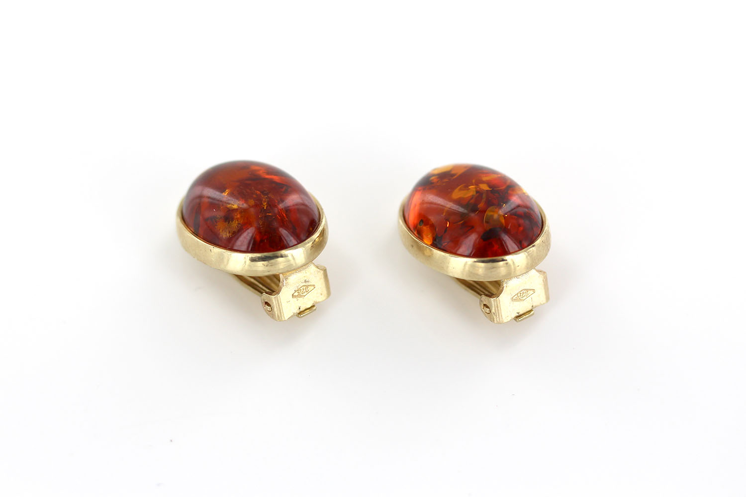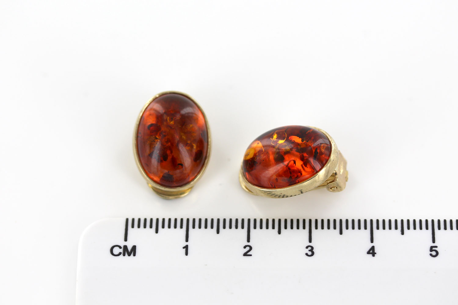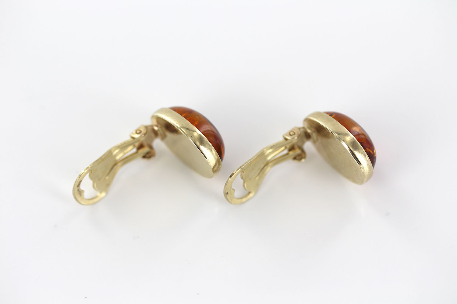 Italian Handmade German Baltic Amber Clip-On Earrings, 9 Ct Gold-GCl0015