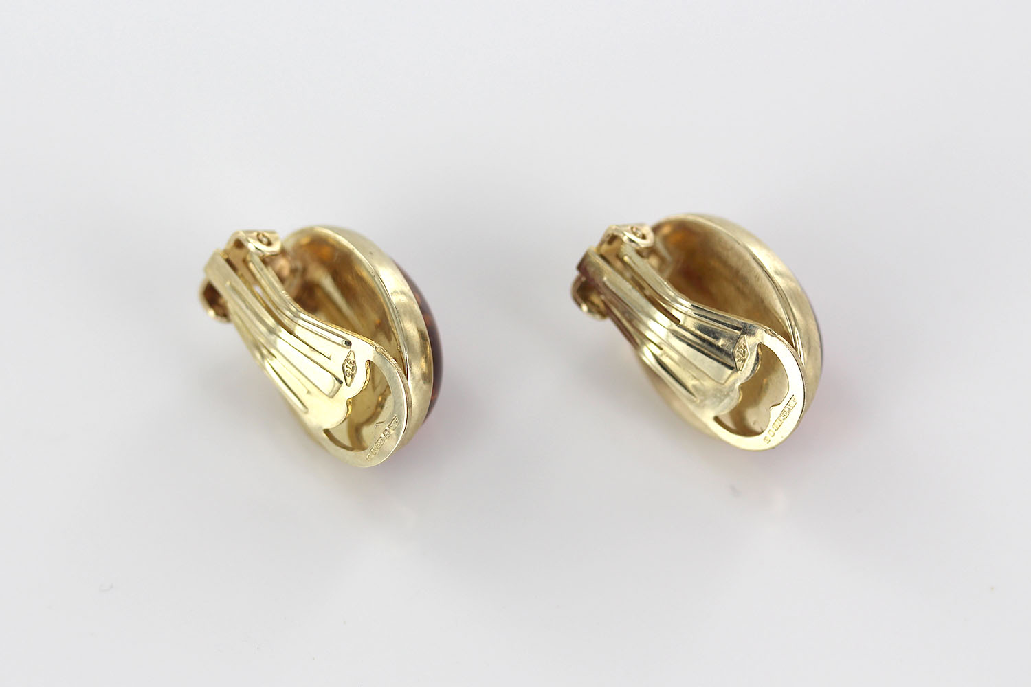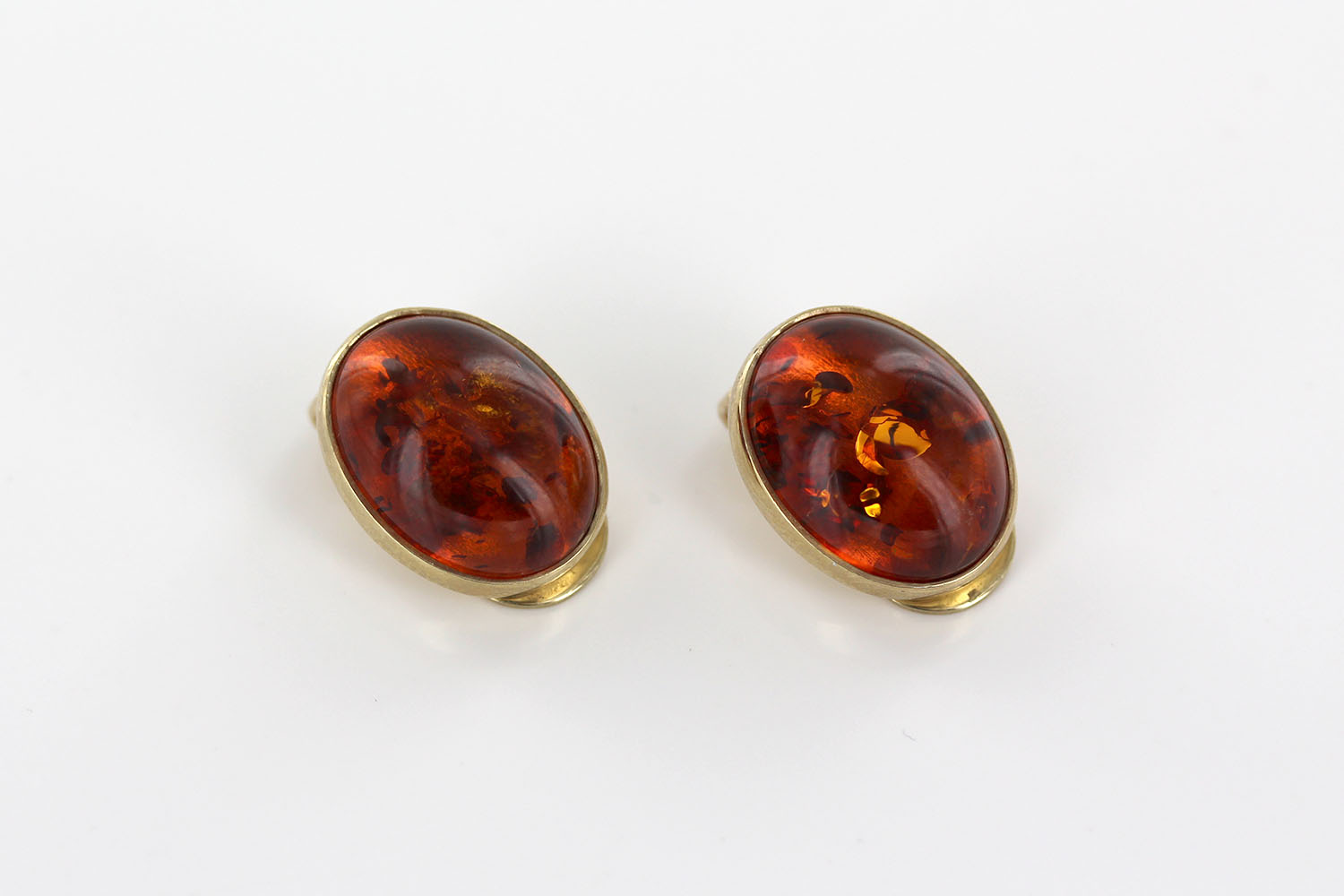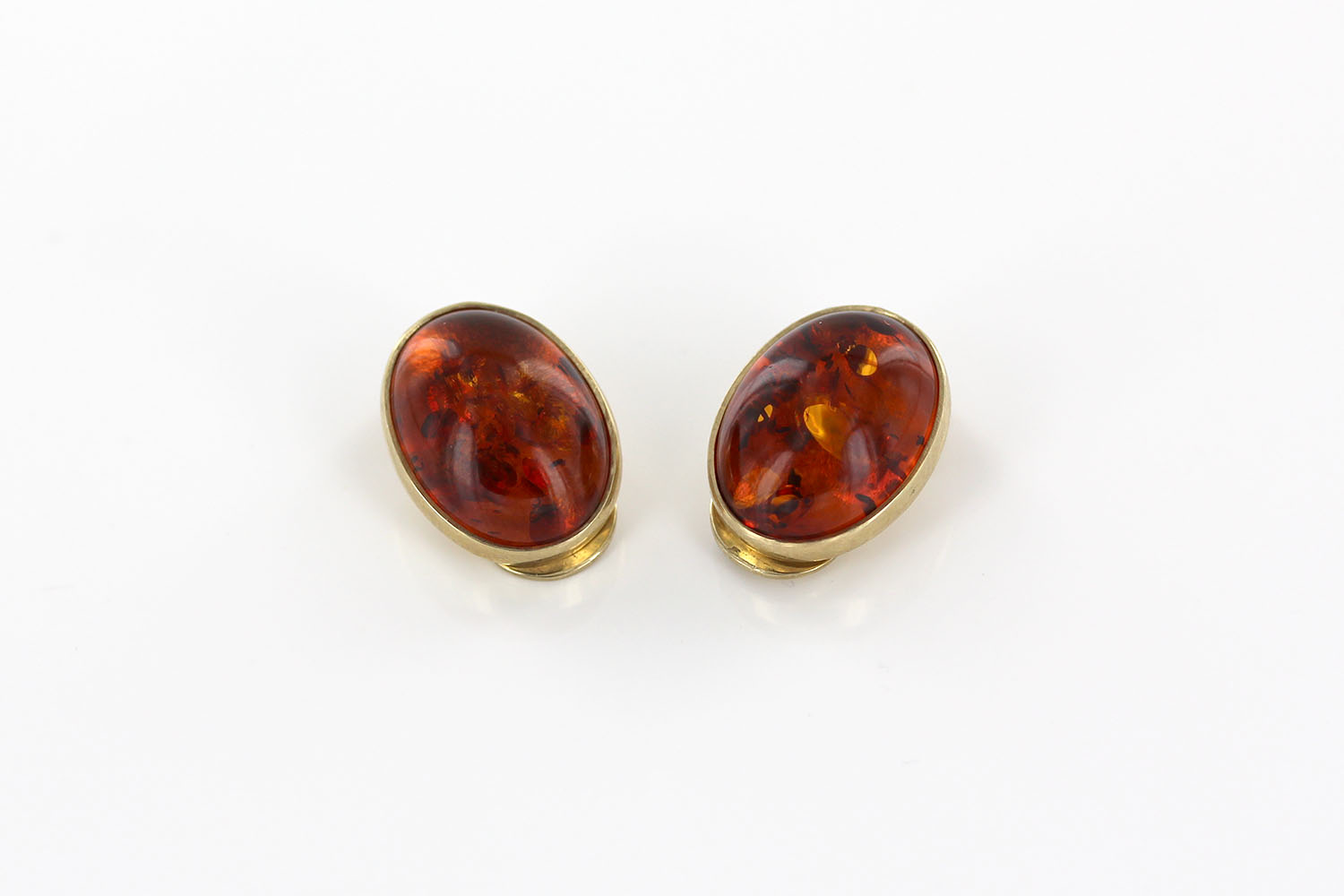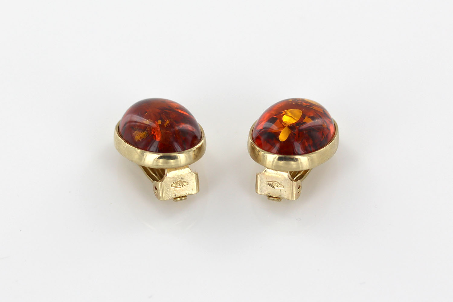Italian Handmade German Baltic Amber Clip-On Earrings, 9 Ct Gold-GCl0015