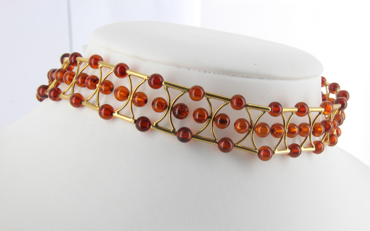 Italian Unique Handmade German Amber Necklace/Choker in 18ct Gold Setting GN0107