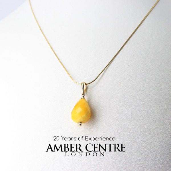 Beautifully Handcrafted German Butterscotch Amber Pendant 9ct solid Gold Loop GP0064Y