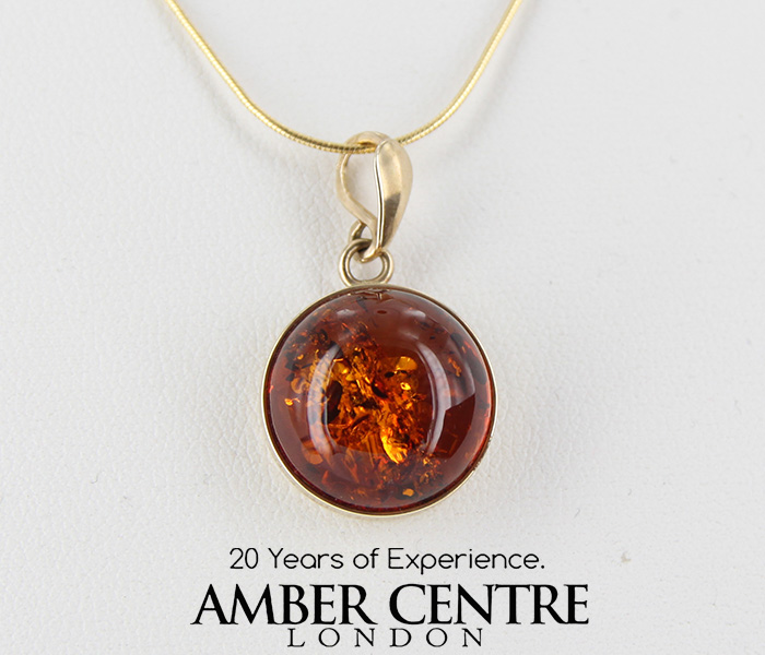 - A very simple and delicate 9ct solid gold setting creates a frame for deep cognac amber.