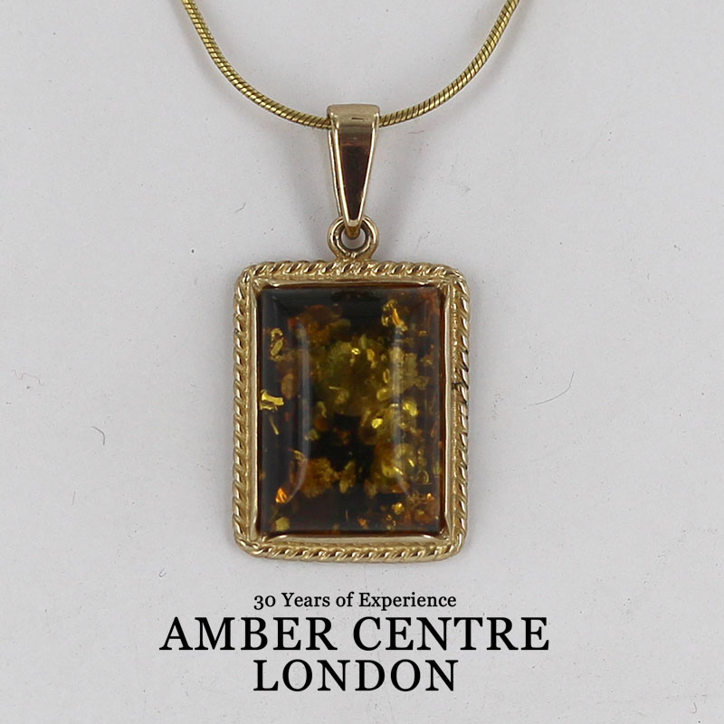 Italian Made German Green Baltic Amber Pendant in 9ct solid Gold -GP0110G RRP£445!!!