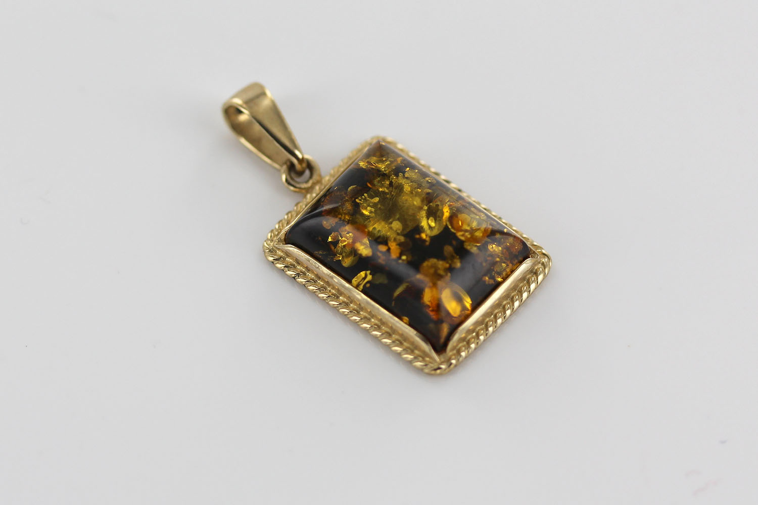 Green German Baltic Amber Pendant in 9ct Italian solid Gold -GP0110G