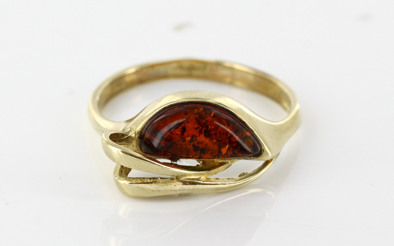 GENUINE BALTIC AMBER ITALIAN-MADE RING IN 9ct Solid GOLD SETTING – GR0156