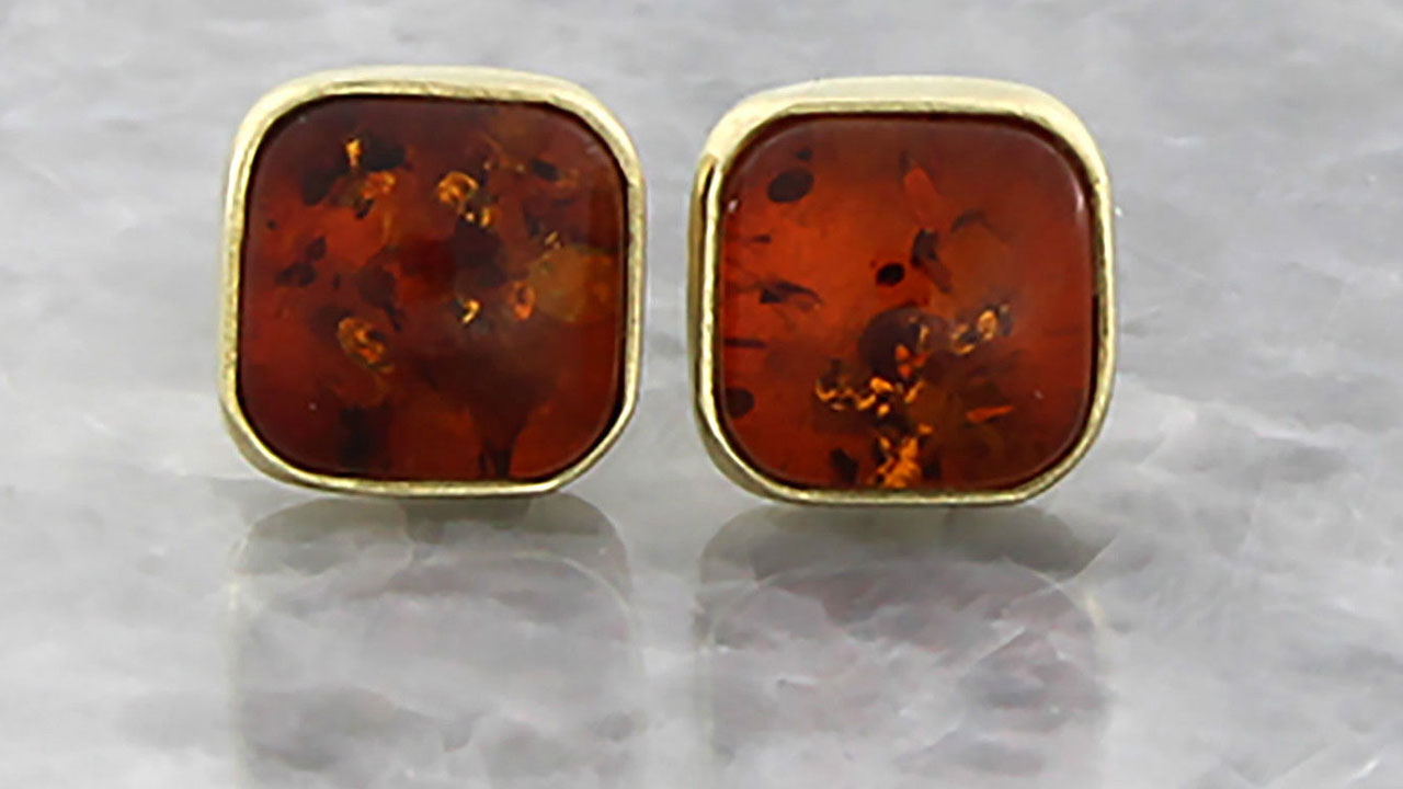 ITALIAN-MADE German BALTIC AMBER STUDS IN 9CT Solid GOLD GS0095