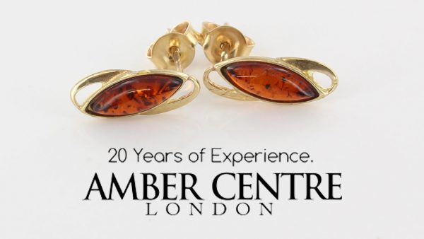 ITALIAN-MADE German BALTIC AMBER STUDS IN 9CT Solid GOLD GS0102