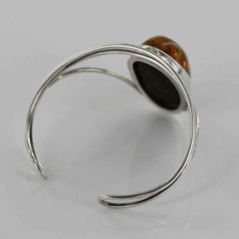 This bangle is set with natural, beautiful Baltic amber, creating a unique design