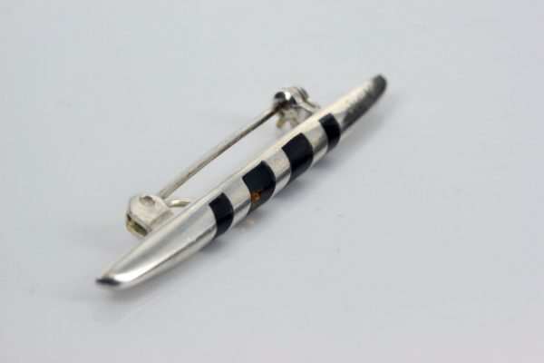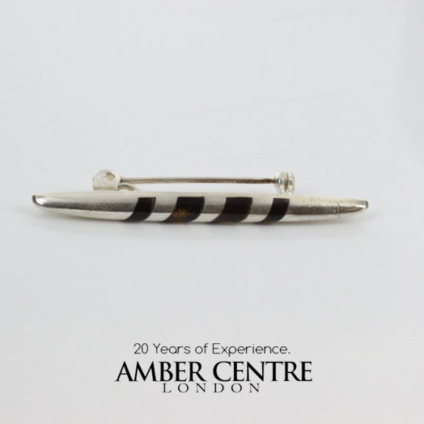 The dark cognac German Baltic amber is complemented by its cylindrically shaped silver setting. The Italian-style brooch has been handcrafted to provide the most intricate details. The amber is beautifully complemented by the 925 sterling silver setting. This modern and elegant design brooch is perfect for any occasion. Baltic amber is known for its beauty and is made of organic material which contains natural oils and succinic acid.
