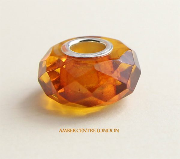 GENUINE BALTIC AMBER & STERLING SILVER CHARM COMPATIBLE WITH ALL EUROPEAN CHARM BRACELETS- CHA75