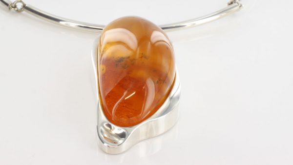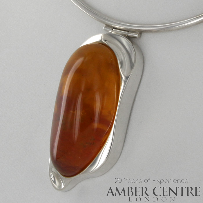 Necklace: amazing light butterscotch Baltic amber with cloudy milky inclusions inside. Modern and elegant design. Genuine handmade German Baltic amber set in solid sterling silver. This rare and beautiful Baltic amber piece is finished in a simple and elegant sterling silver setting. London Assay Office Hallmark. With your necklace you will receive original Amber Centre gift packaging.