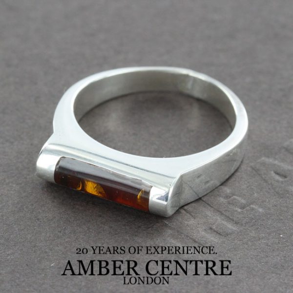 German Baltic Amber Tube Shaped Design 925 Silver Handmade Ring WR287 RRP£65!!! Size Q(58),P(56),N(54)