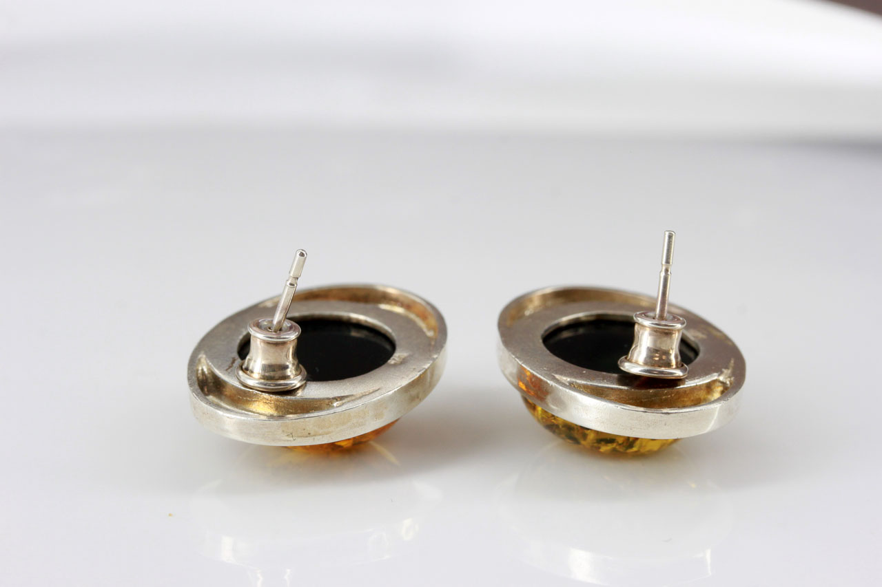 Unique German Baltic Amber Stud Earrings In 925 Silver ST0101