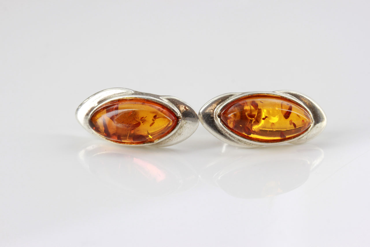 - Each amber piece is marquise-shaped, with 925 sterling silver.