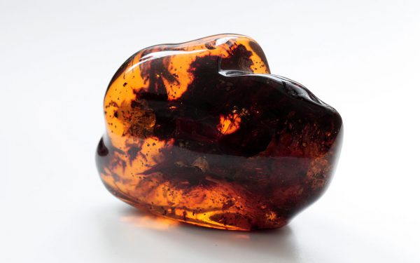 This individual amber piece has dark red tones, with orange and brown hues. As it is smooth and more flat in its shape, the piece is very unique.