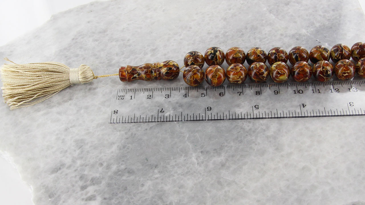 Prayer beads, also known as worry beads are used by various cultures in Asian, African, Middle East, Anatolian, Ottoman, Turkish, Greek and Indian for meditation purposes as well as for protection from negative energies and to relieve stress. In Islam, prayer beads are referred to as Misbaha or Tasbih or Sibha, and are usually made of 99 beads, representing the 99 Names of Allah. You can also find beads which contain only 33 beads. In this case, one would cycle through three times to total 99. Traditionally, the beads are used while praying to Tasbih of Fatima. This is a form of prayer which is offered as a gift by the Prophet Muhammad to his daughter Fatima recited 33 times Subhan Allah (Glory be to God), 33 times Al-hamdu lilah (Praise be to God), and 34 times Allah Akbar (God is the Greatest).